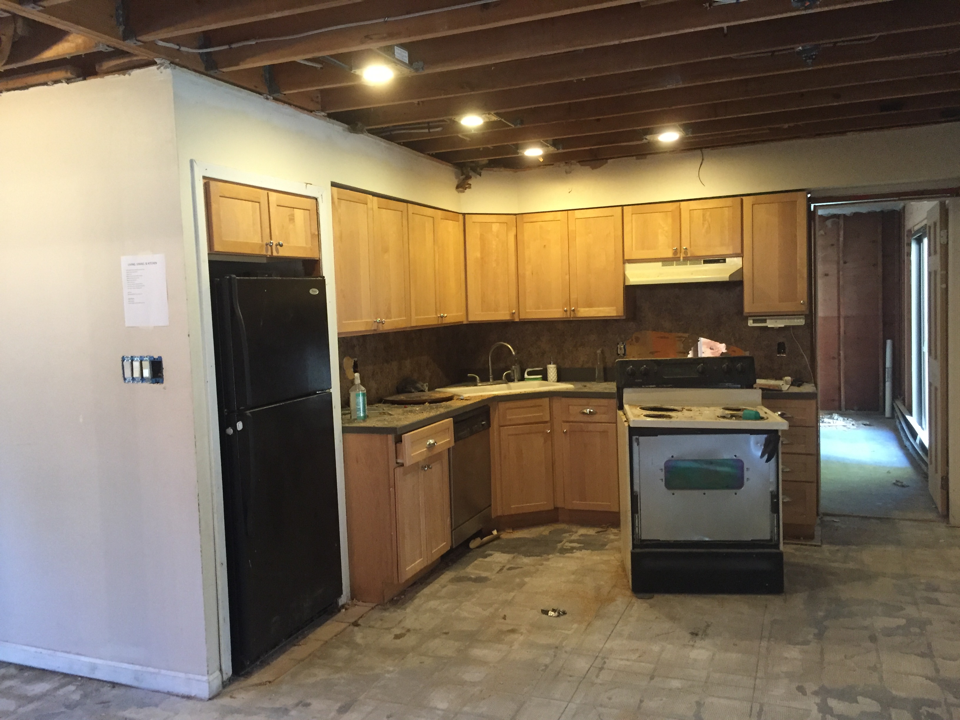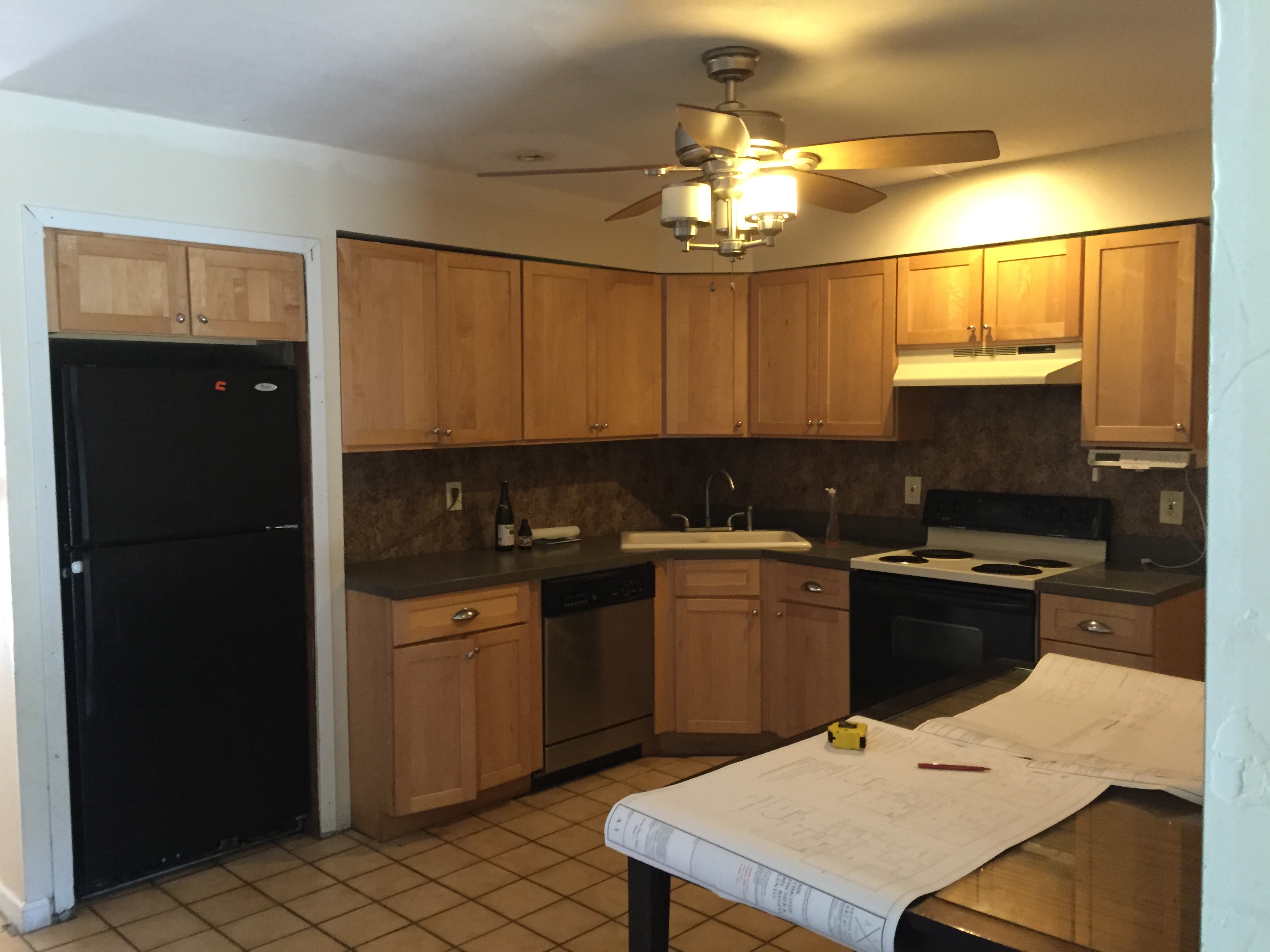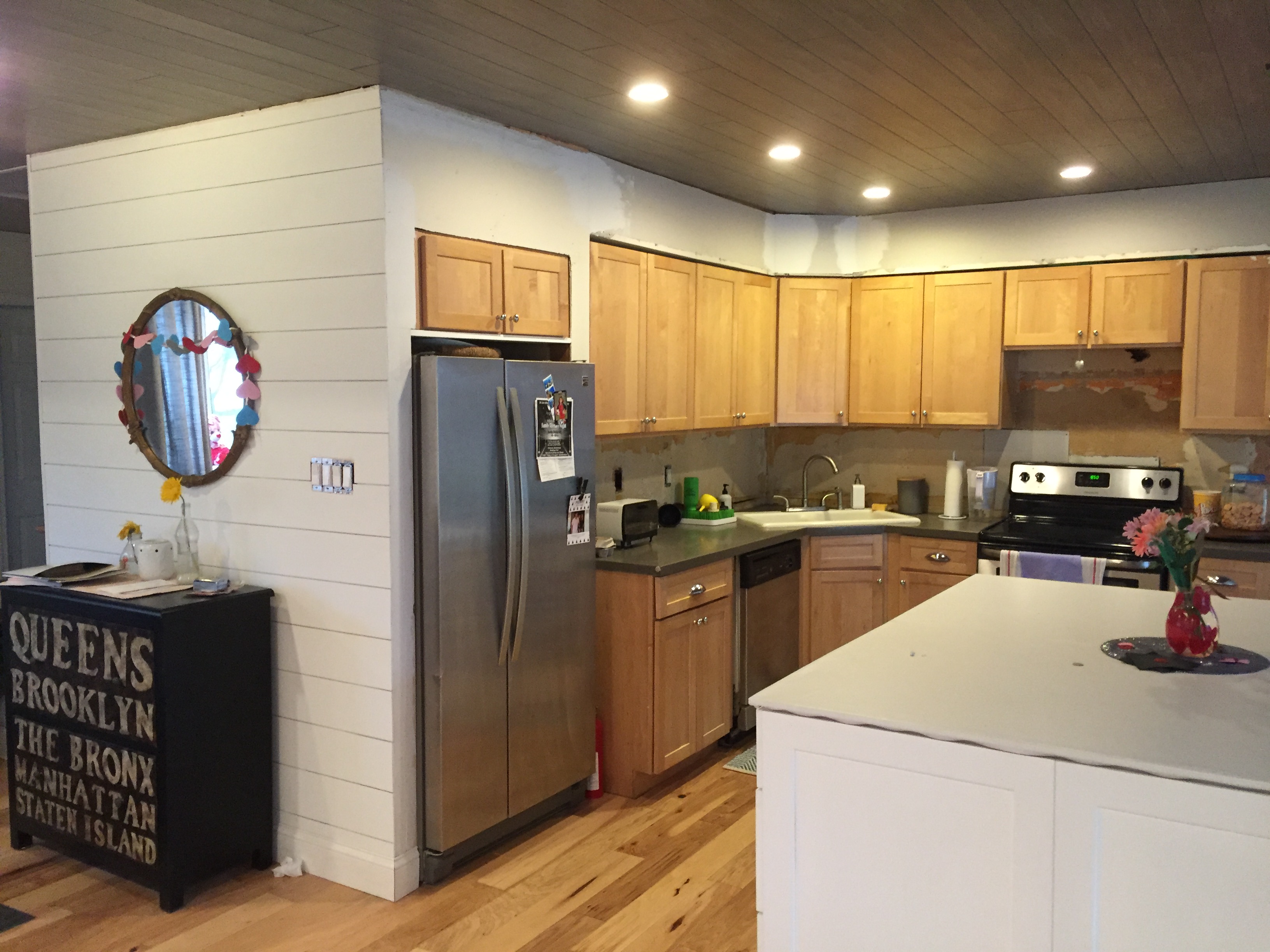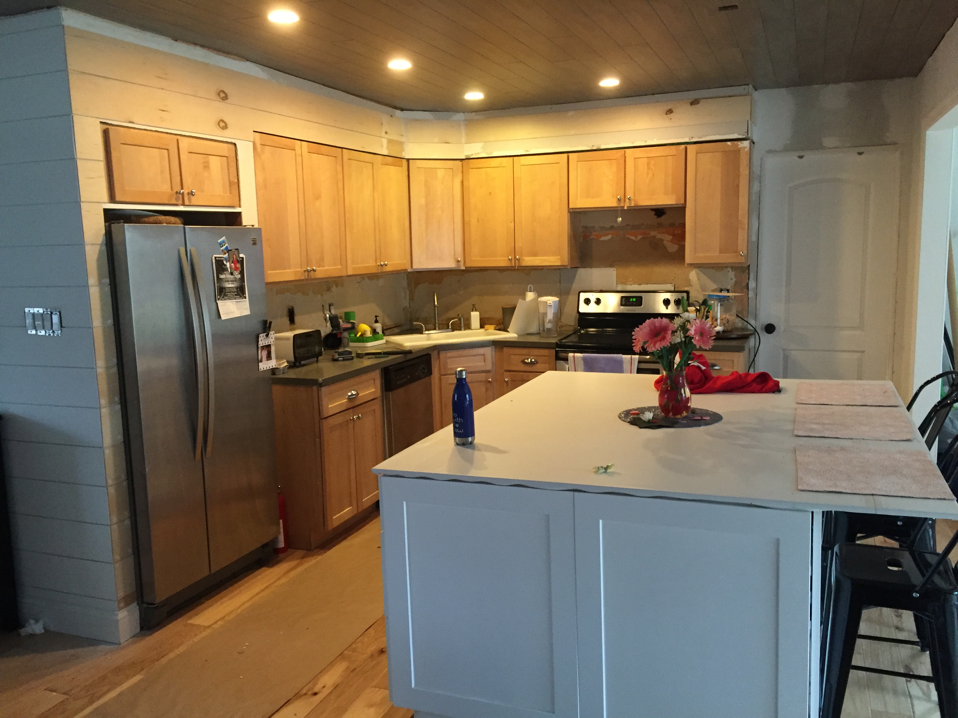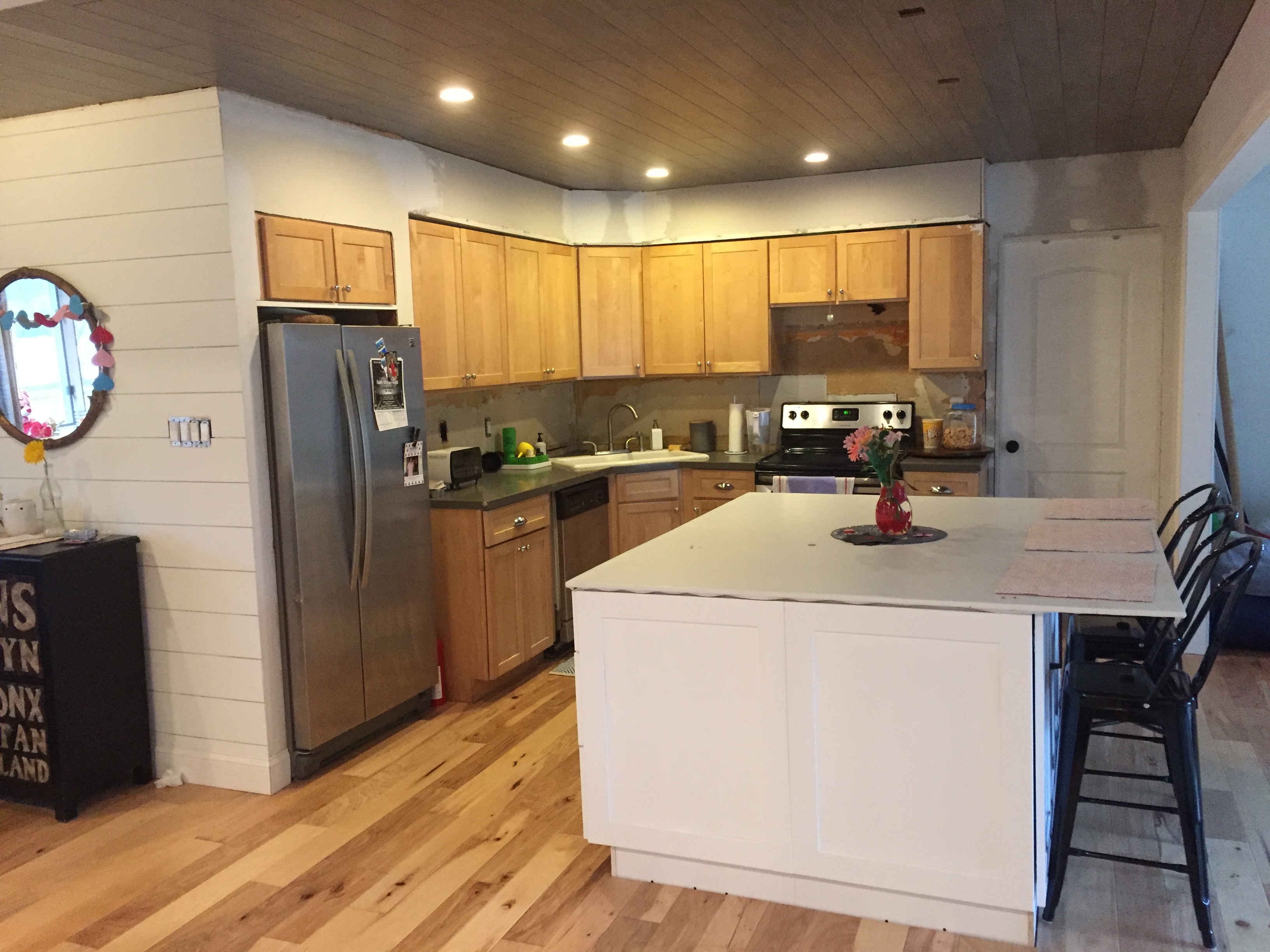 So here it is, long overdo, picture of the kitchen transformation. Before, during, after. Scroll Right
