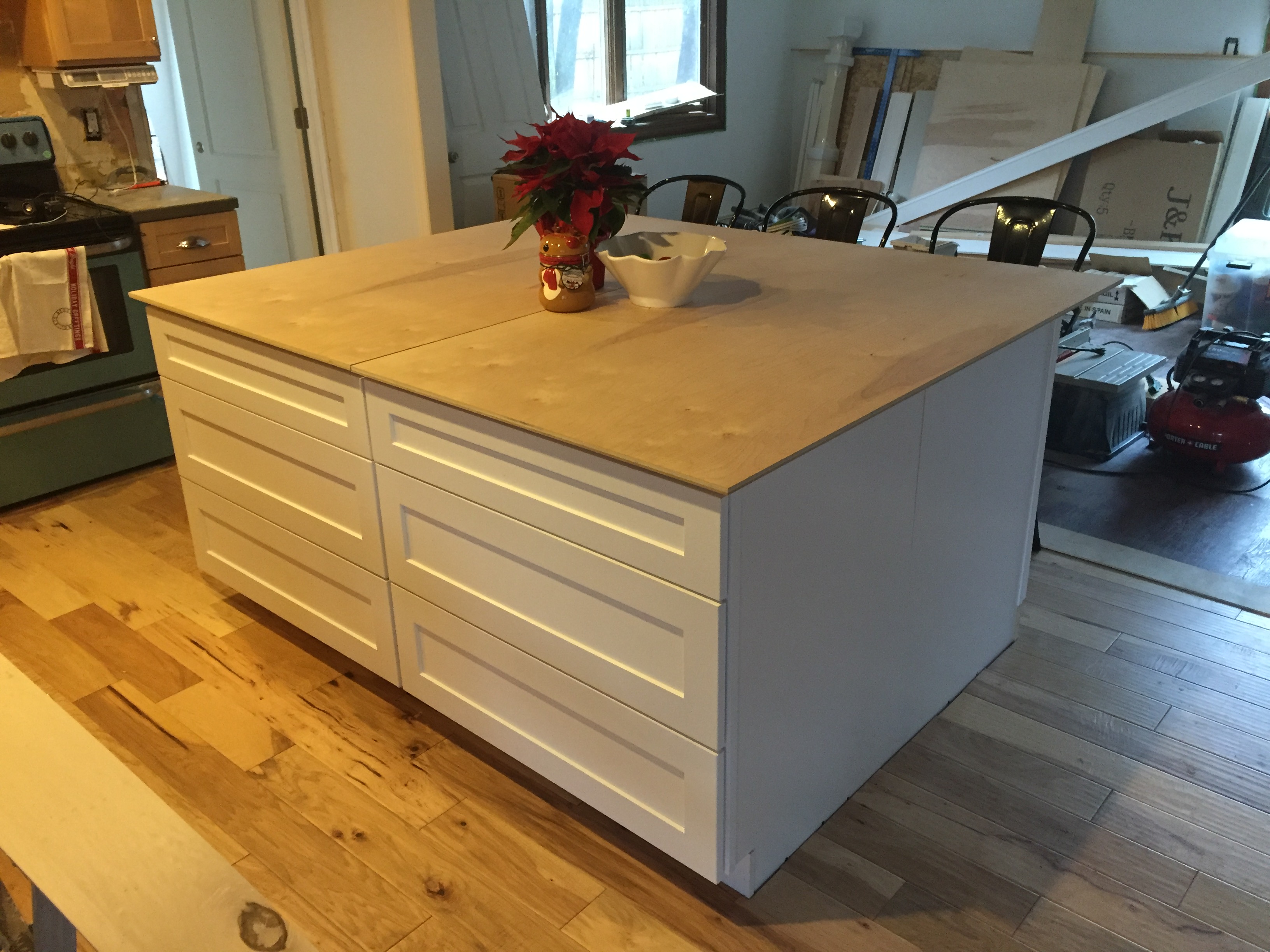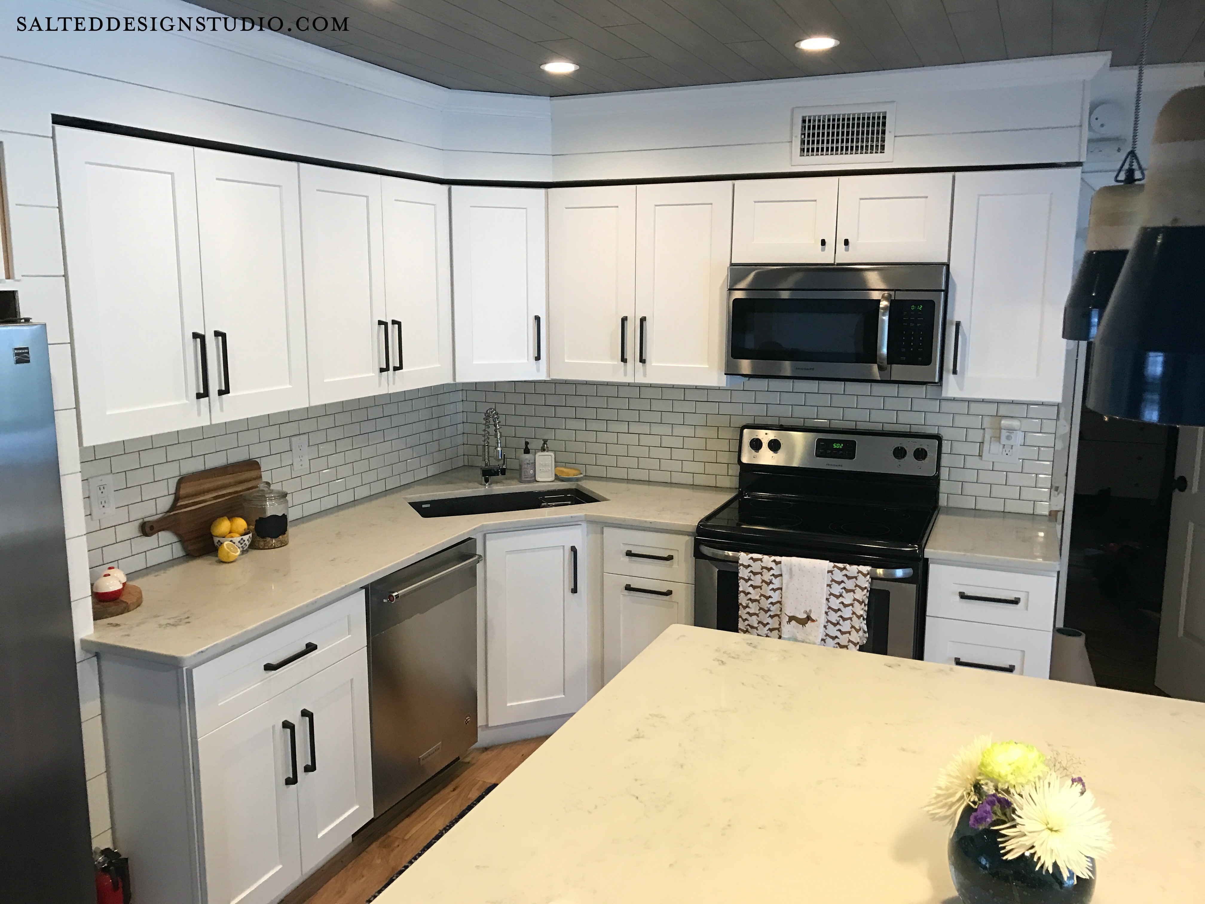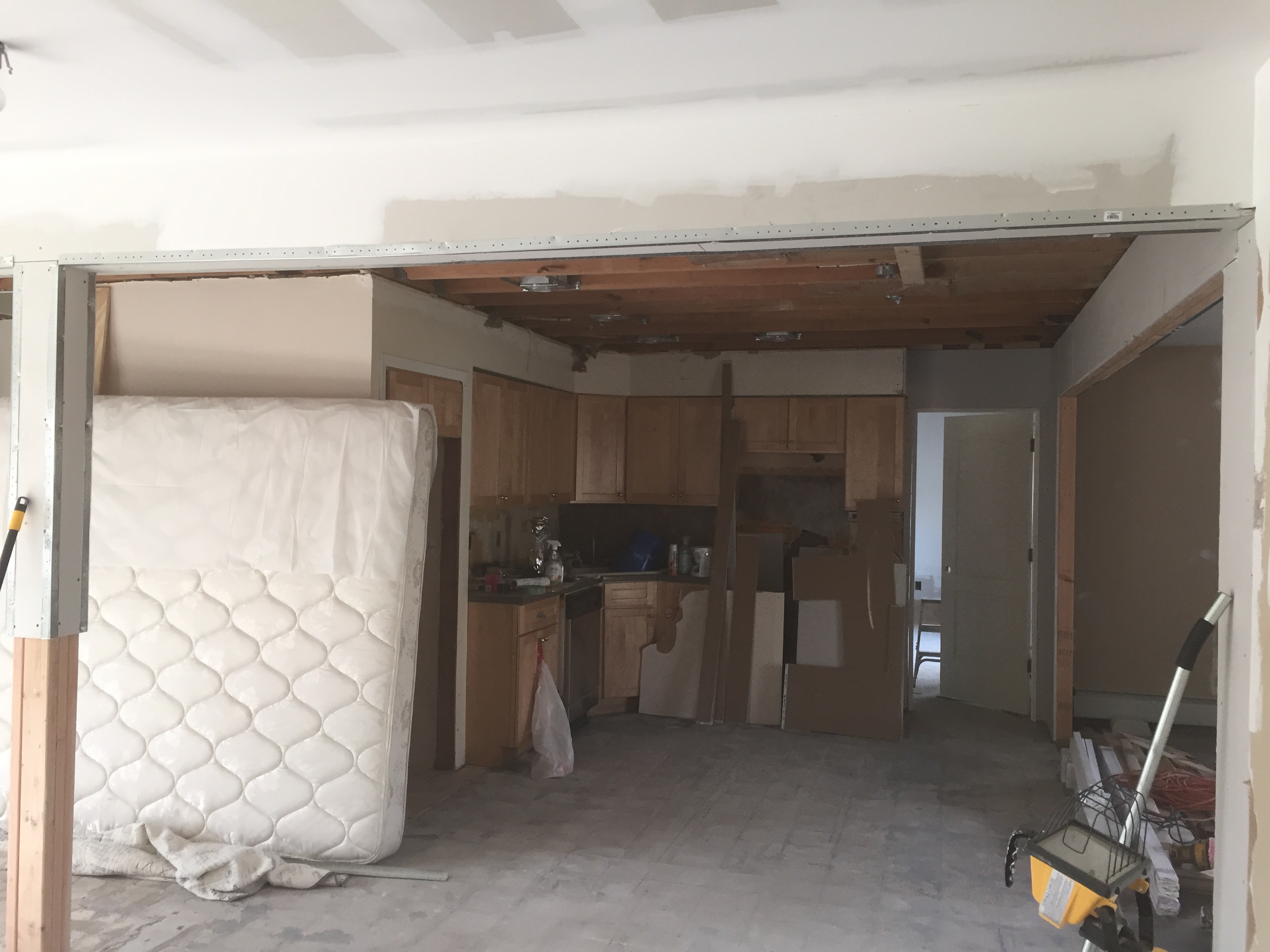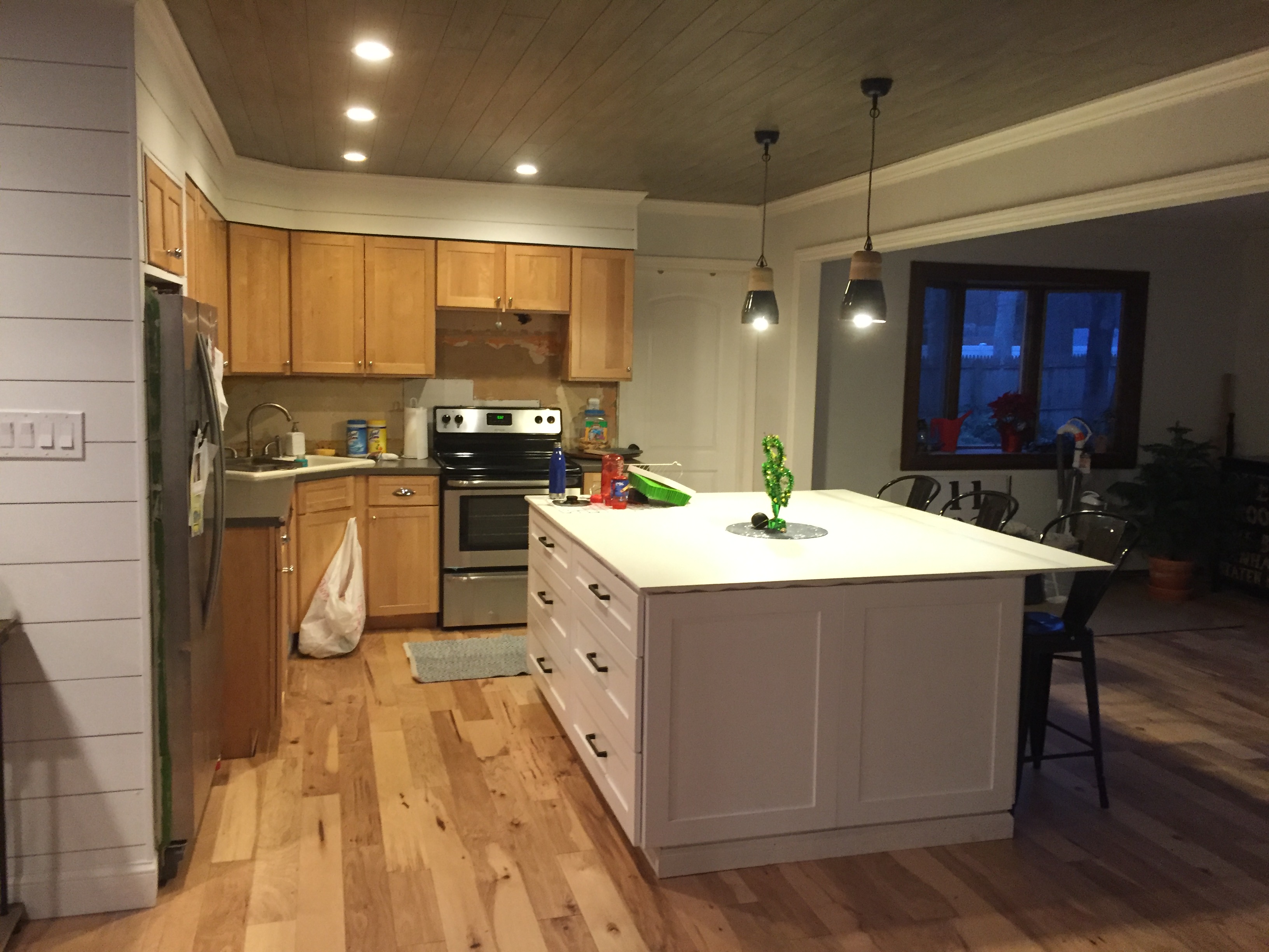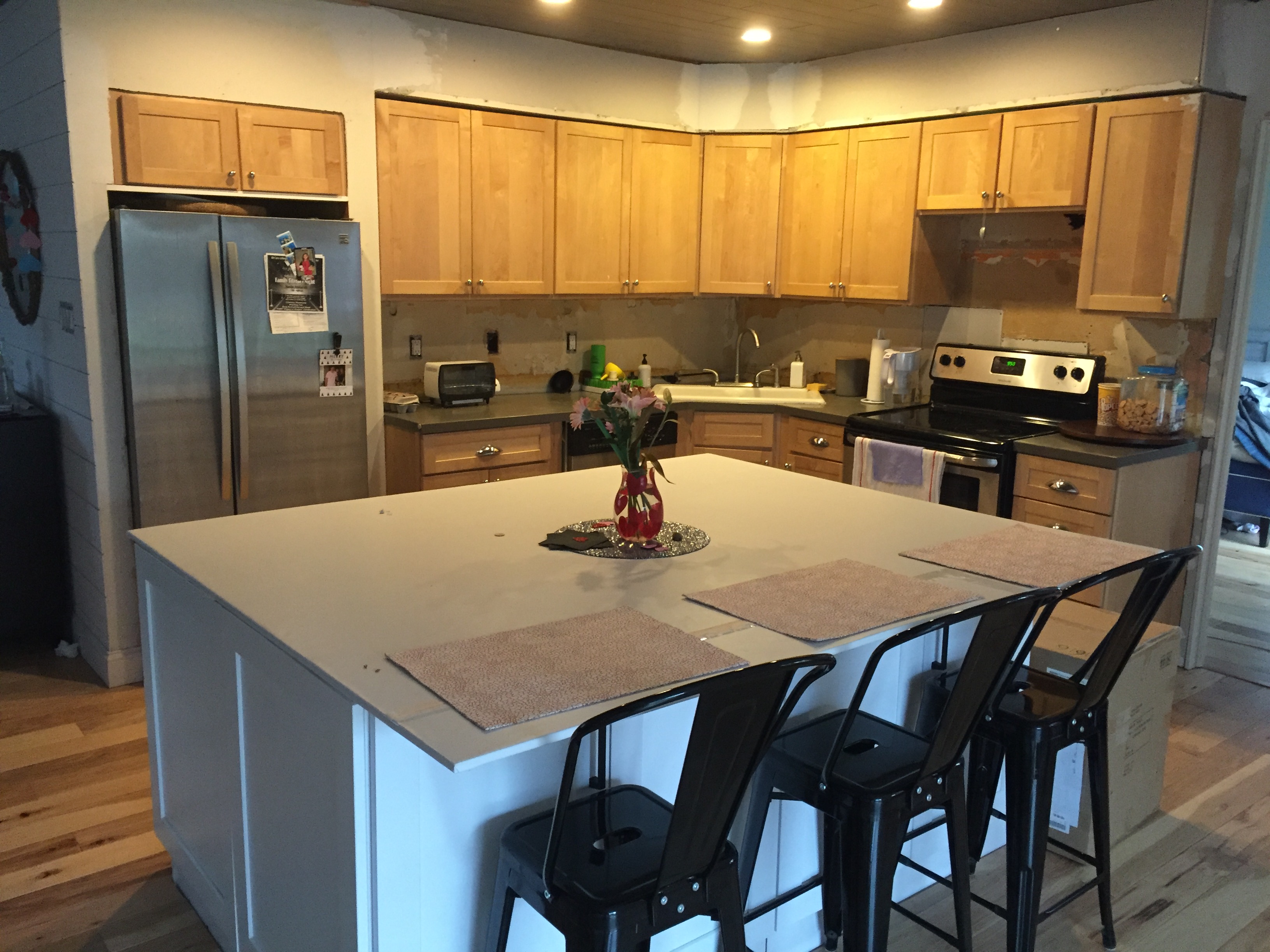 So here it is, long overdo, picture of the kitchen transformation. Before, during, after. Scroll Right
